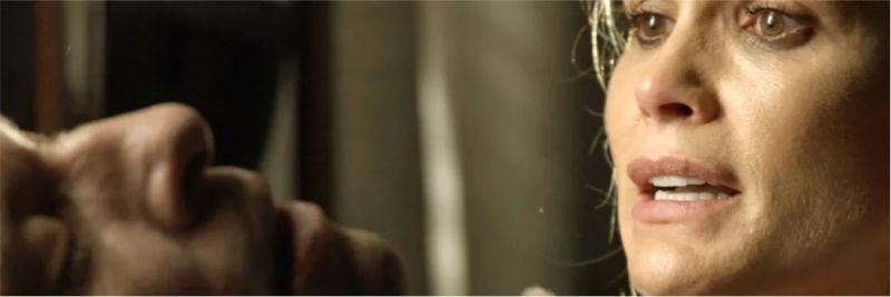 Peçanha abre a porta da delegacia e Cássia segue atrás dele. Até que ela para e olha horrorizada para o o corpo do marido estendido no chão, e um bilhete cravado em seu peito: